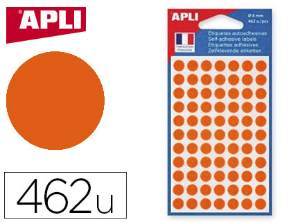 Pastille adhésive apli agipa diamètre 15mm permanente coloris orange pochette 168 unités