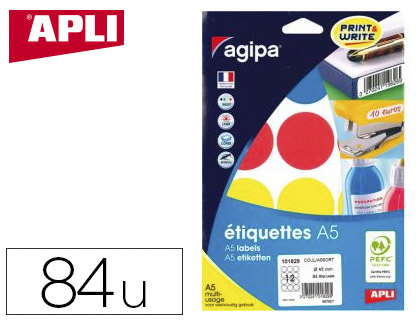 Pastille adhésive apli agipa diamètre 30mm coloris assortis pochette 168 unités