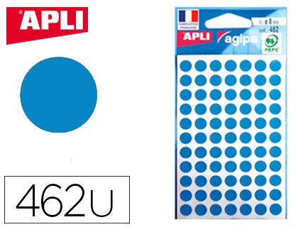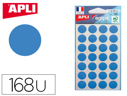 Pastille adhésive apli agipa diamètre 15mm permanente coloris bleu boîte 150 unités