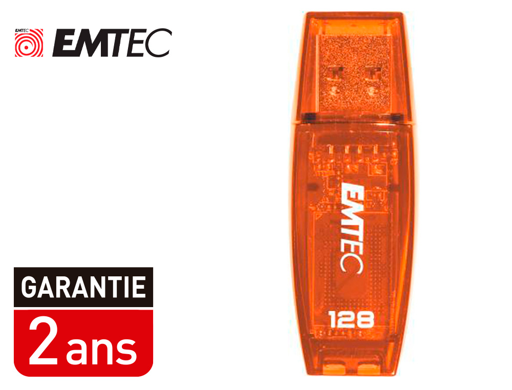 Cle usb emtec 2.0 c350 brick pivotante 128gb vitesse lecture 15mbs ecriture mb/s coloris orange