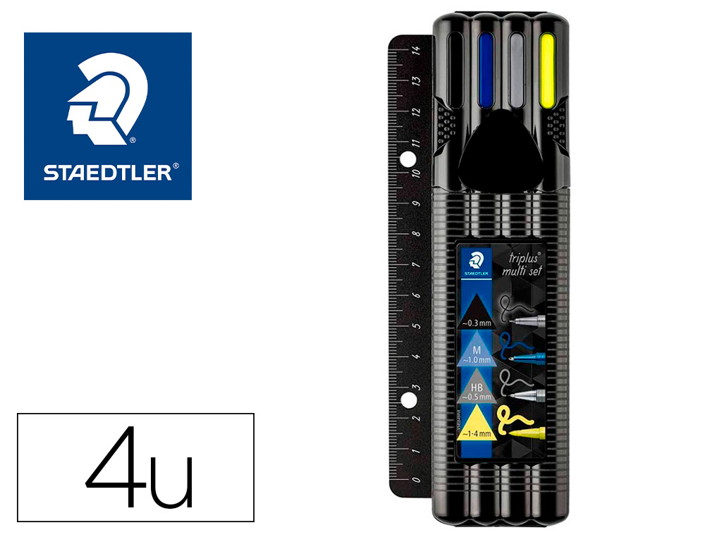 Etui staedtler triplus multi set 4 unites 1 feutre fineliner noir 1 stylo-bille bleu 1 porte-mine 1
