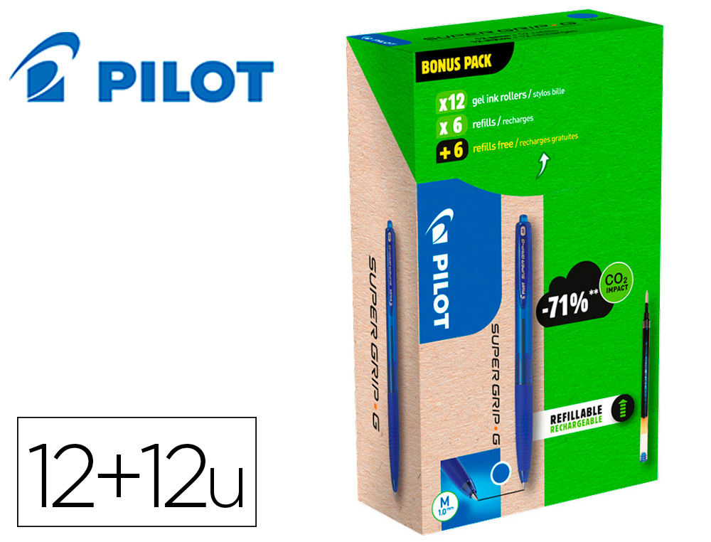 Stylo pilot frixion ball clicker retractable pointe 0,7mm bonus pack 12 rollers + 12 recharges coloris bleu