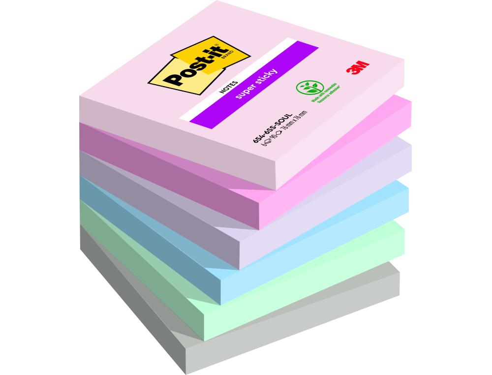Bloc notes post-it super sticky collection soulful 47,6 x 47,6mm 12 blocs 90 feuilles