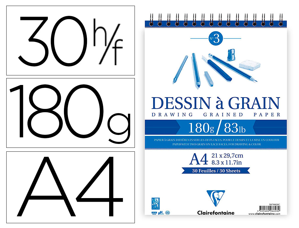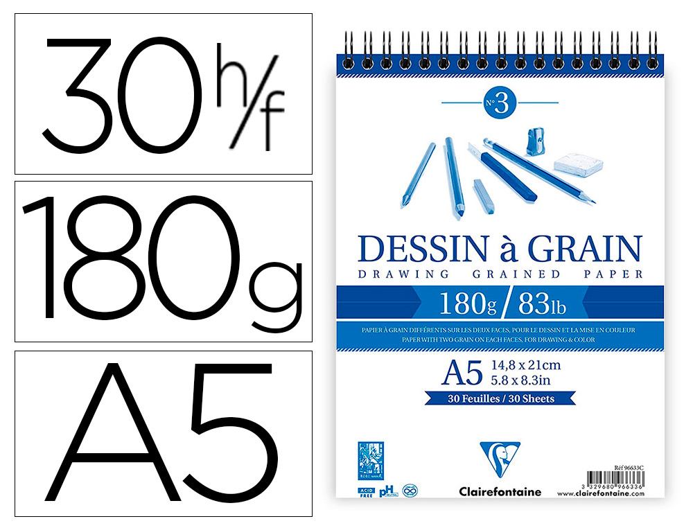 Découvrez le bloc de dessin Clairefontaine, conçu spécialement pour les artistes et amateurs de dessin. Ce bloc spiralé offre des feuilles blanches de 180g, idéales pour capter les pigments de divers médiums artistiques grâce à un grain fin et régulier permettant des dégradés de gris très riches.