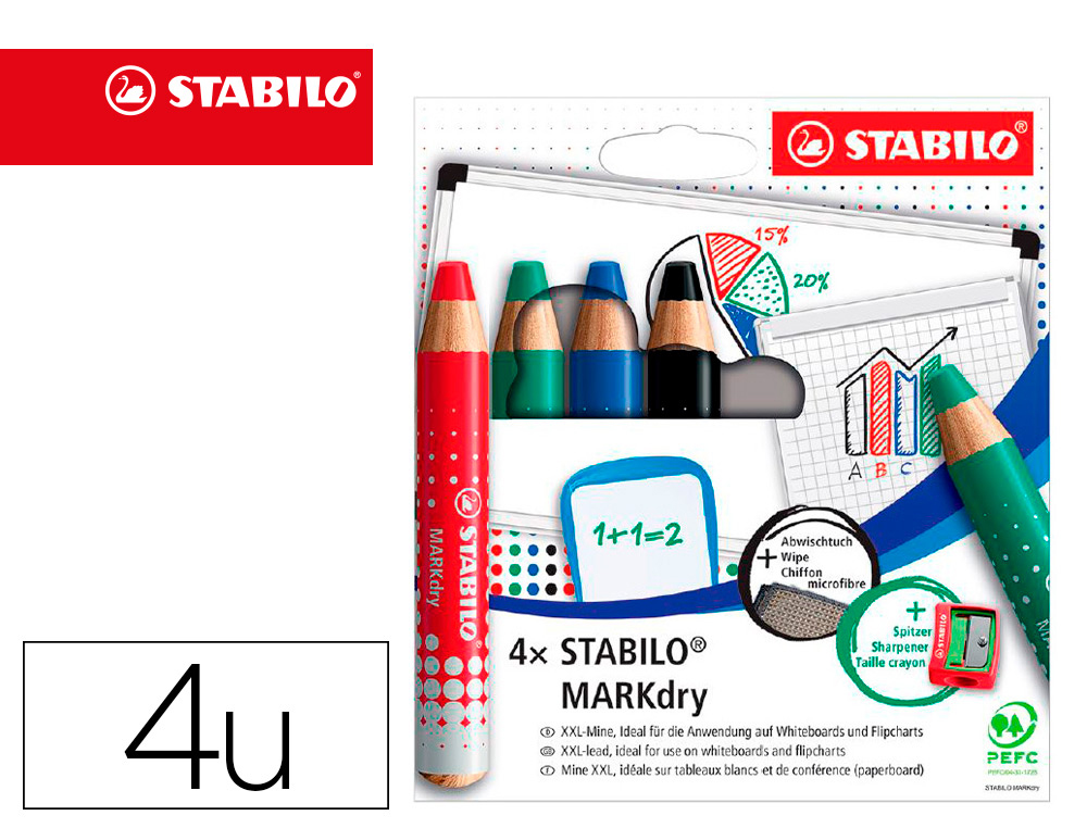 Avec sa technologie de l'encre à séchage rapide et sa capacité d'effaçage à sec, le crayon marqueur STABILO MARKDRY vous permet de corriger ou modifier vos écrits en toute simplicité, sans laisser de résidus indésirables. Optez pour une écriture confortable et prolongée avec ce produit conçu pour résister à l'assèchement et offrant un contraste net et lisible sur toute surface lisse.