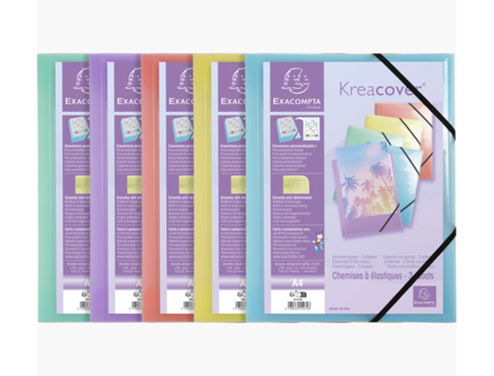 Chemise 3 rabats exacompta krea cover a4 couverture personnalisable pp transparent coloris assortis