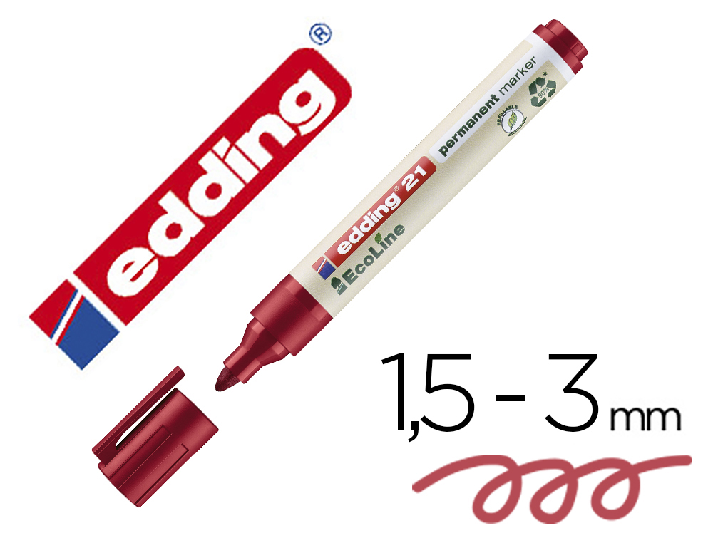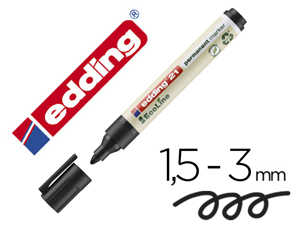 Marqueur edding 21 ecoline permanent rechargeable pointe ogive 1,5/3mm coloris assortis pack 4 unites