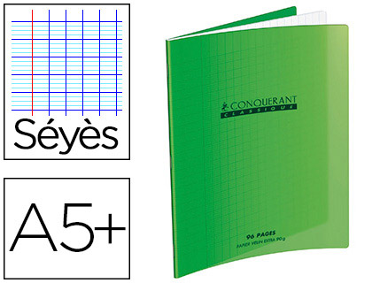 Cahier conquerant poplypropylene indechirable et lavable papier velin extra 24x32 cm 192 pages seyes