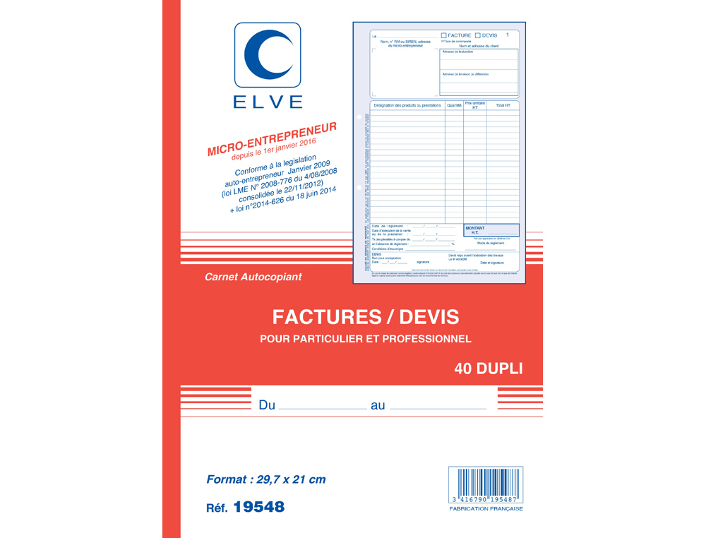 - Marque : ELVE, reconnue dans le secteur de la papeterie et des articles de comptabilité.