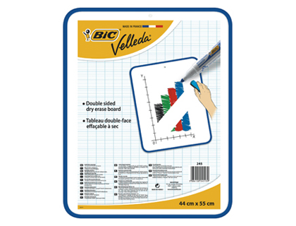 Tableau blanc velleda double face effaçable unie oeillet suspension livré sous film 44x30cm