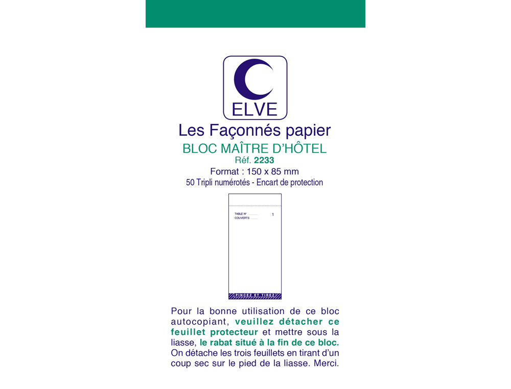 - Type de produit : Bloc maître d'hôtel à papier autocopiant
