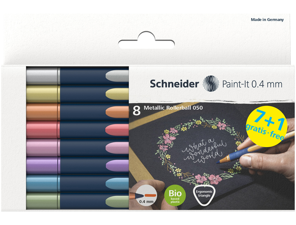 Pochette schneider roller metallique paint it 050 trait 0,4 mm pointe ultra smooth 4 coloris assorti