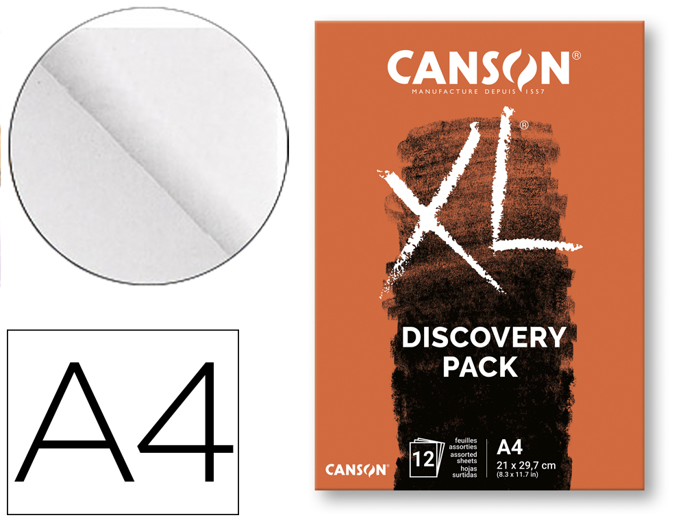Pochette canson decouverte xl a4 papiers assortis technique humide 12 feuilles
