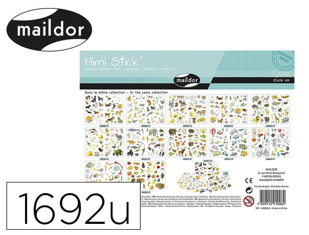 - Quantité : 3240 gommettes réparties sur 20 planches (10 planches métallisées et 10 planches pastels)