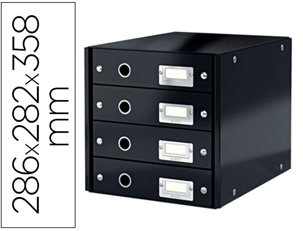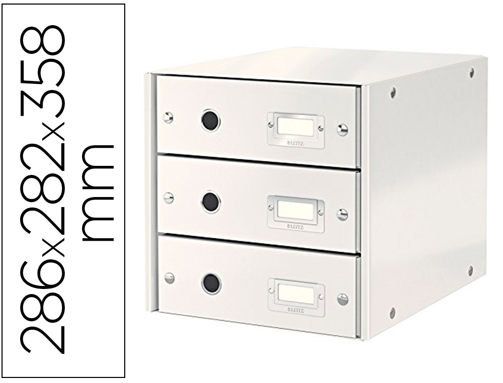Boîte classement leitz click&store 3 tiroirs carton fort 286x282x358mm porte-étiquette oeillet préhension coloris noir