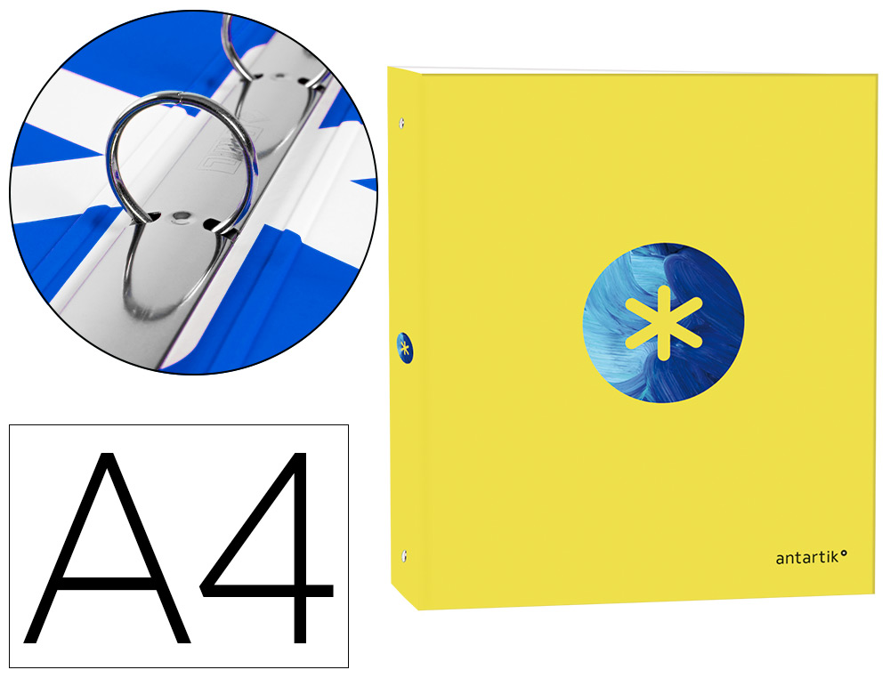 Classeur antartik 4 anneaux 25mm a4 carton remborde feuillets mobiles seyes coloris jaune