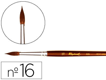 Pinceau raphaël petit gris pur nº4 manche court laqué marron virole aluminium anodisé